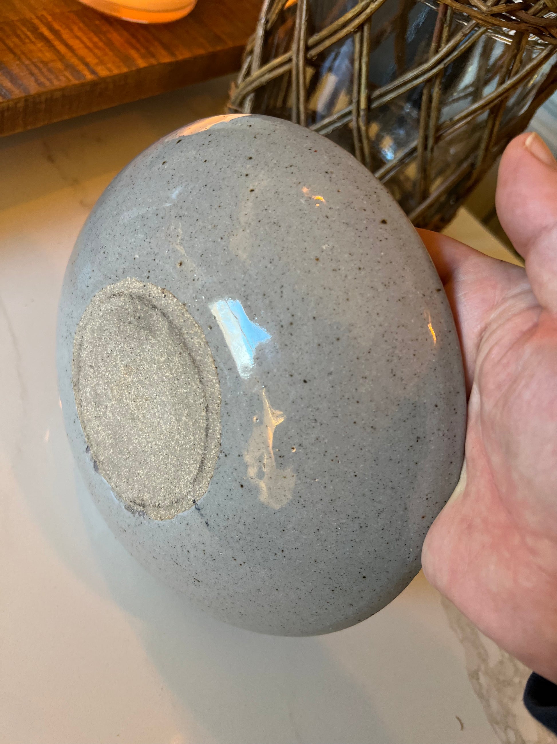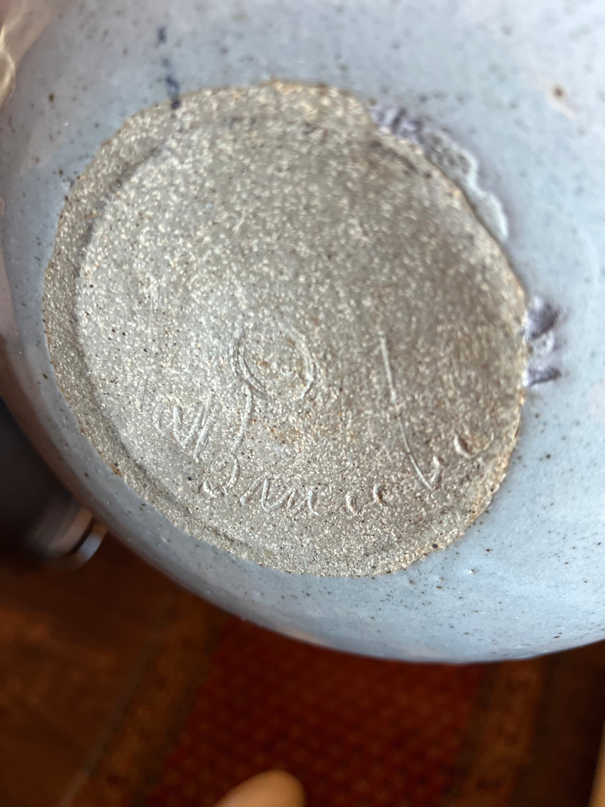 This handcrafted studio pottery bowl showcases artisan glazing techniques with a distinctive blue rim that frames the piece. This bowl signed by the potter, confirming its authenticity as a one-of-a-kind creation. The glazed surface offers both visual appeal and functional durability, making it suitable for display or everyday use. Perfect for collectors who appreciate the craftsmanship and character inherent in studio pottery, this bowl reflects the maker's dedication to their craft and serves as a testament to traditional ceramic artistry.
