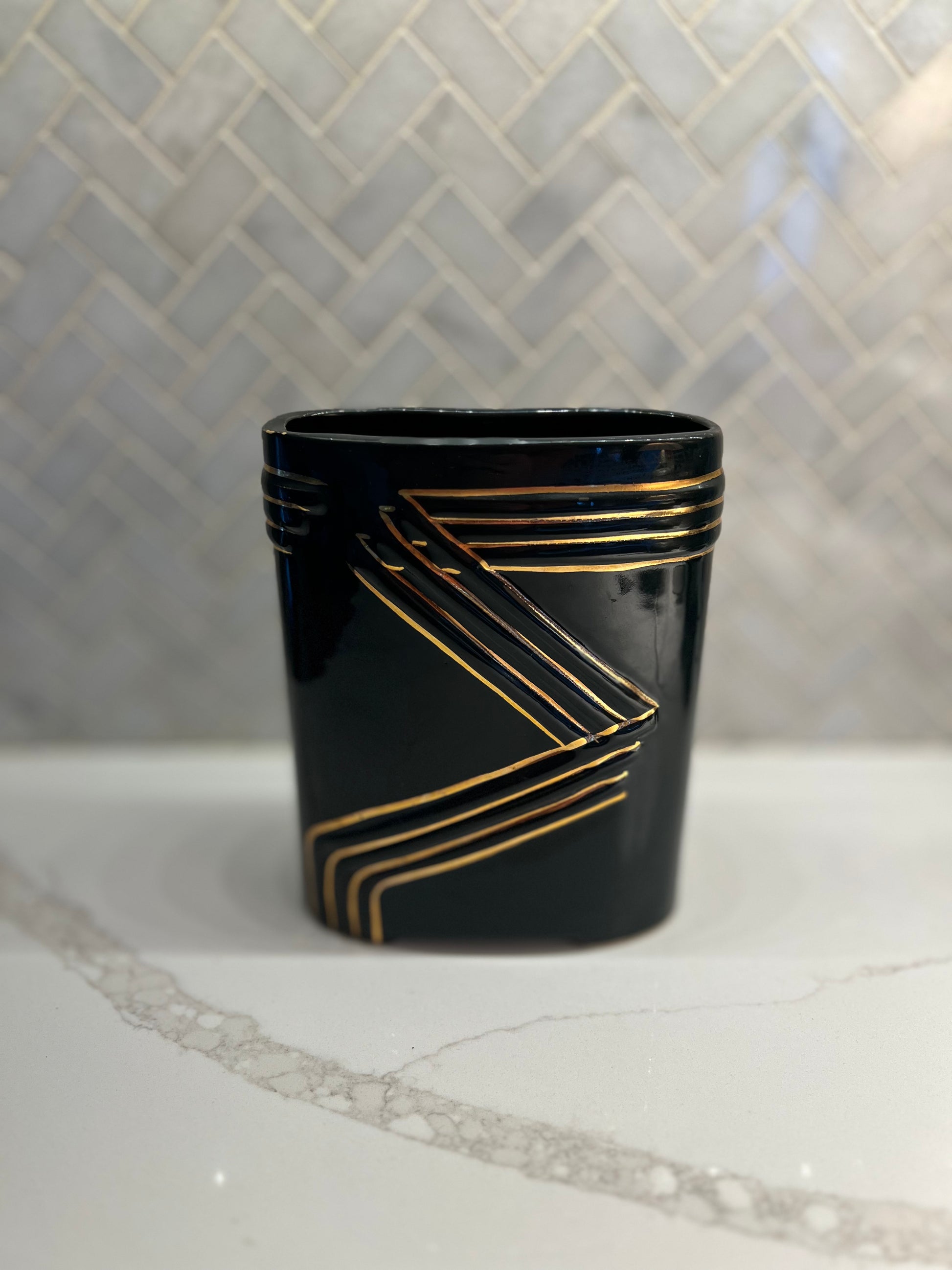 Vintage Black and Gold Art Deco Style Vase