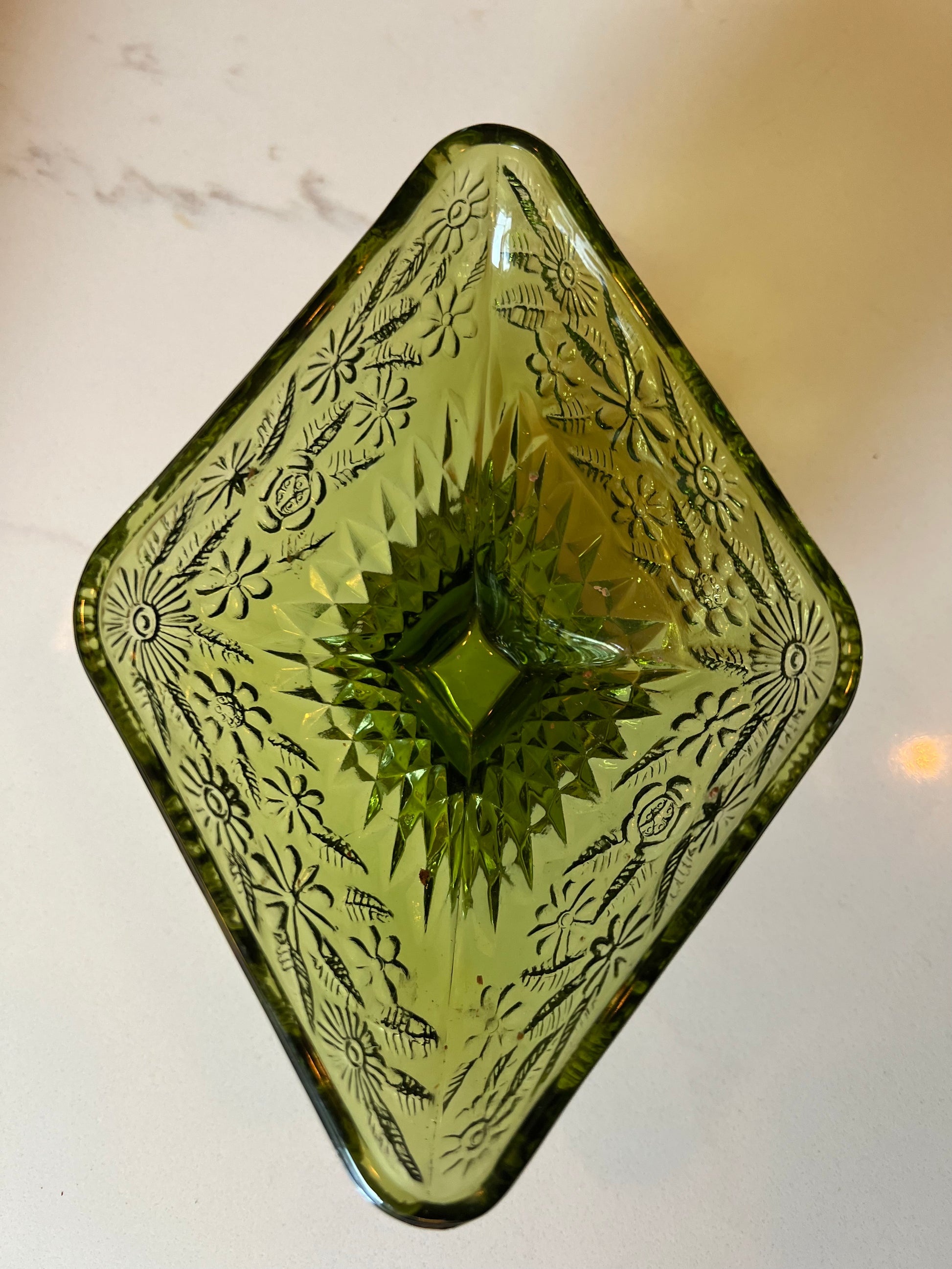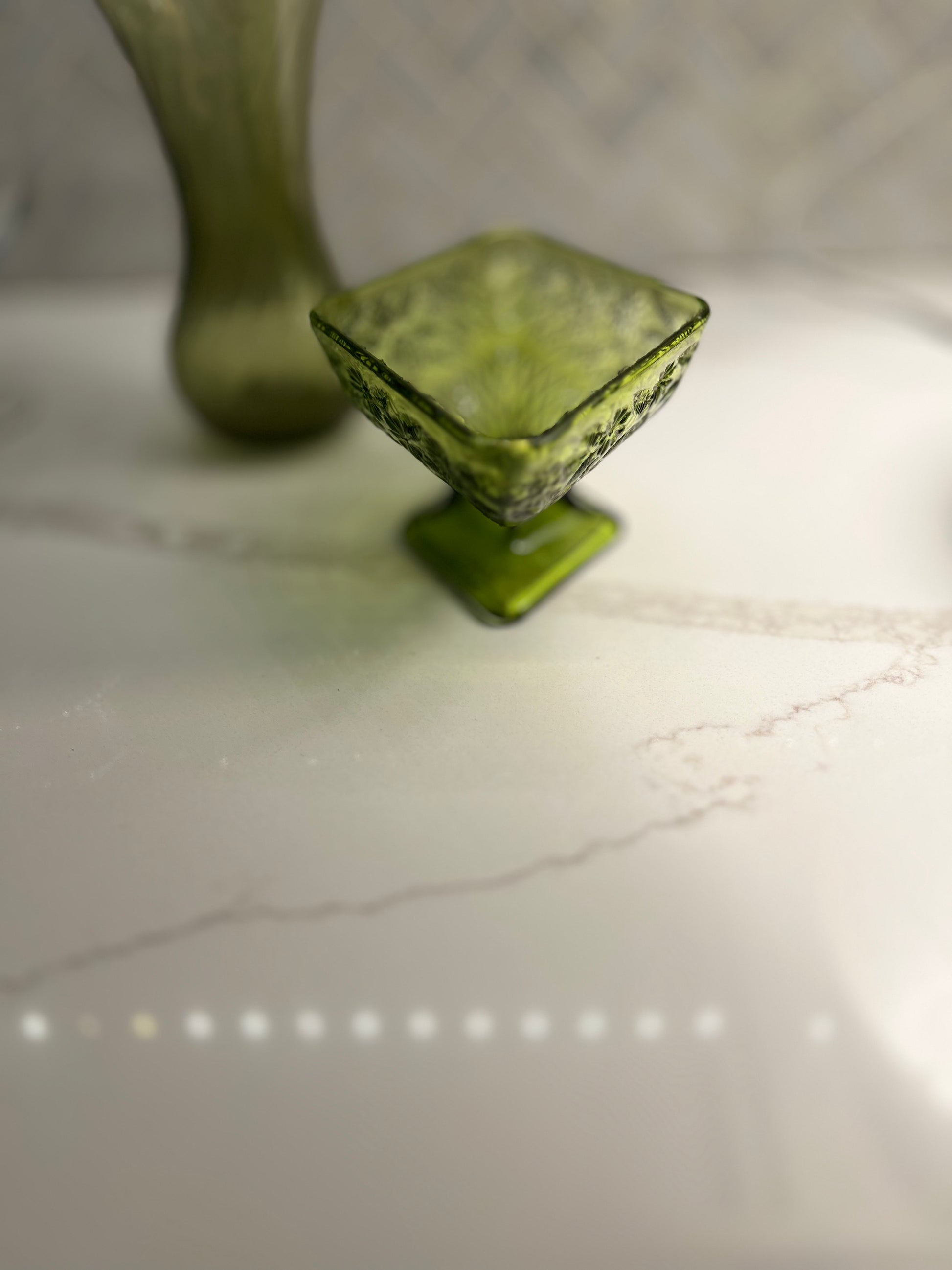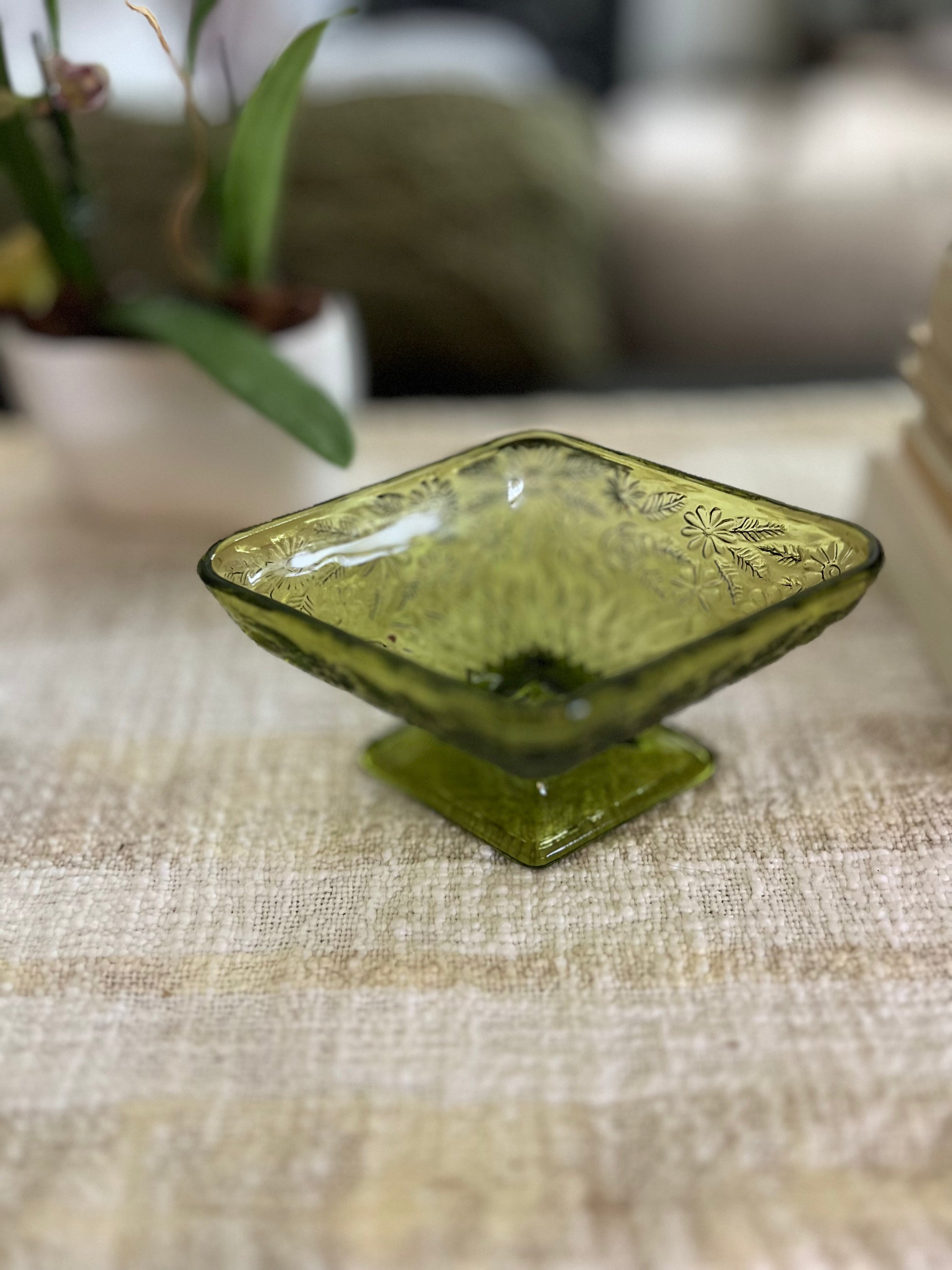 Elevate your tabletop with this striking vintage pedestal bowl from Indiana Glass. Crafted in a rich, jewel-toned green, this piece showcases the quality glasswork that made Indiana Glass a collector's favorite throughout the mid-20th century. The elevated base provides elegant display presence, whether styled as a centerpiece, serving vessel, or standalone décor accent. Its timeless design complements both traditional and eclectic interiors. A distinguished addition for glass enthusiasts and vintage home décor collectors.